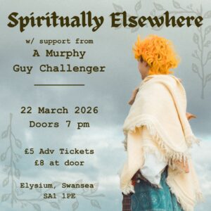 Spiritually Elsewhere is an Aberystwyth and Baltimore based bardic folk artist and performer. They are a Ukrainian-American singer-songwriter who first started exploring lyricism in 2019. Their unique style focuses on melodic and upbeat music covering existential and sometimes funny themes. They weave magic, escapism, and wonder through the style of a wandering fantasy minstrel.