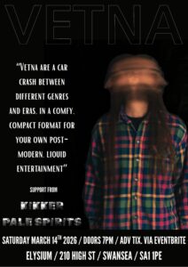 Vetna have released their debut album ‘As Lips Run’ at the end of 2021, and have been touring tirelessly for the following two years around the south of England. They started to record new music with Jim Barr at J&J Studio in Bristol in April 2024, and have released a new single ‘Marta’ in May 2024. This was followed by a second single, ‘King Whammy’, in 2025. A promising taste of what is yet to come.
