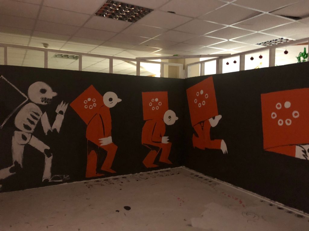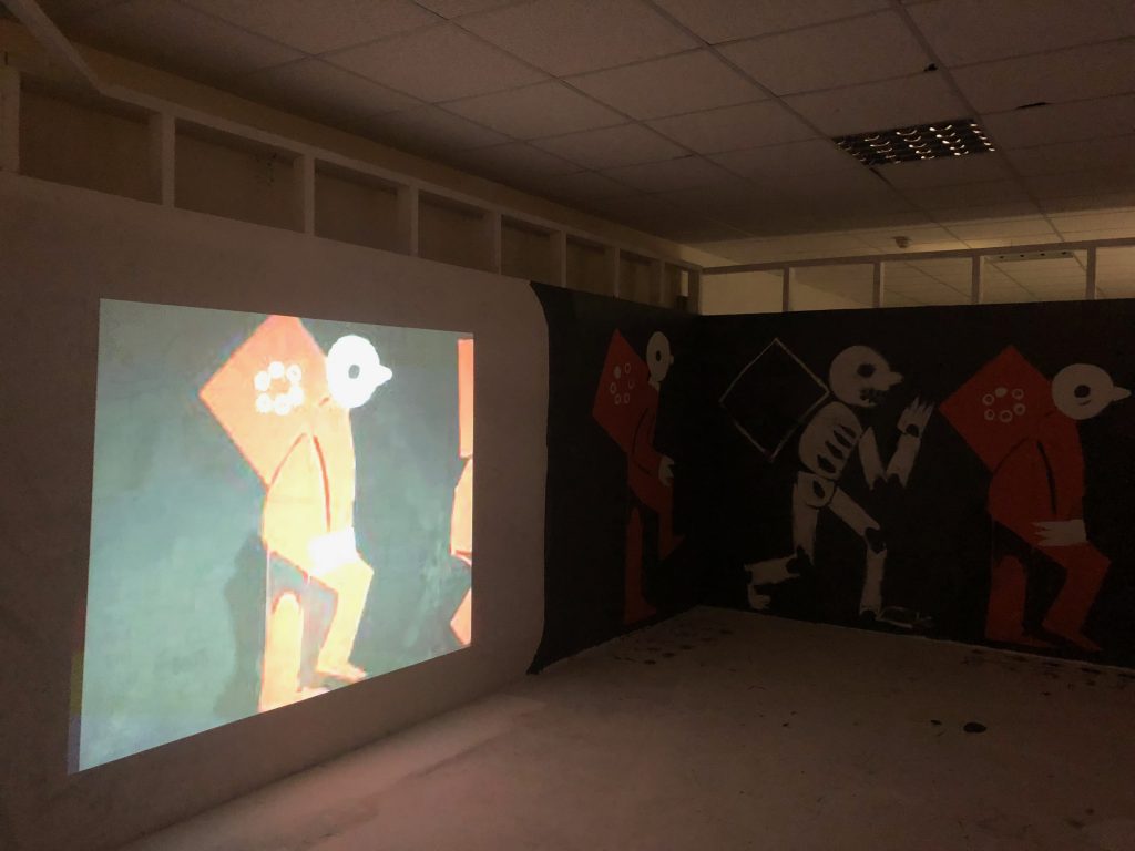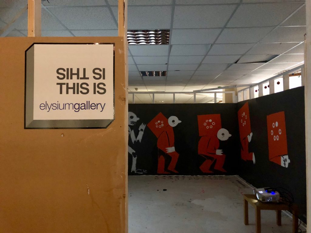 James Milligan who has a studio with elysium gallery is an illustrator who in his time at the project space has been experimenting with scale, projections and animations.