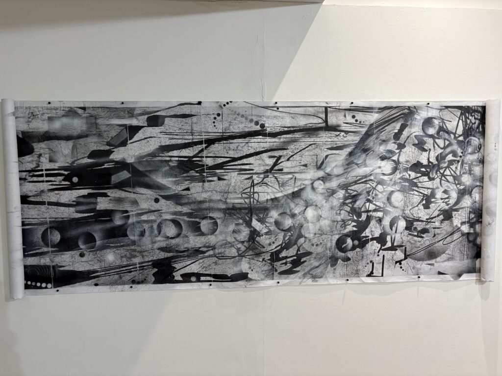I experiment with and re-imagine relationships between the basic elements of drawing and the rhythms operating at these various scales including the linear networks of electrical activity firing between neurons, the “lines of code” contained within stalactite and stalagmite rock formations, and the production of sub-atomic particles through excitations of their quantum fields.