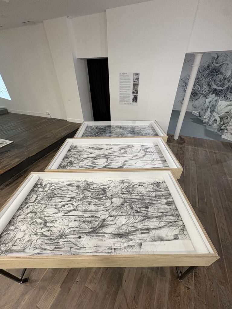 During a residency at the University of Birmingham working with award winning particle physicist professor Kostas Nikolopoulos in 2017 Ian made transformational changes to his practice creating the project The sketchbook and the Collider which seeks equivalents between the interaction of fundamental particles and the language of drawing.