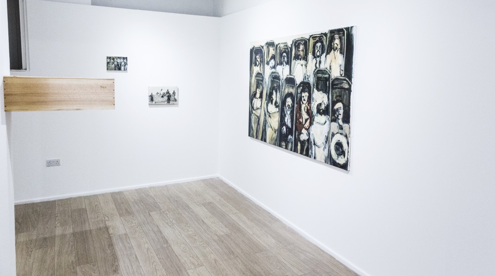 Steph Goodger became transfixed by the corpse photographs, and began to question their authorship, purpose, the identities of their subjects, and many baffling small details. The intrigue and ever shifting speculations have encouraged Steph to embark upon a series of paintings based on these images, followed by a group of “barricade” paintings, which, by contrast, lack human presence, concentrating on the barricade as a spontaneous architecture of rebellion.